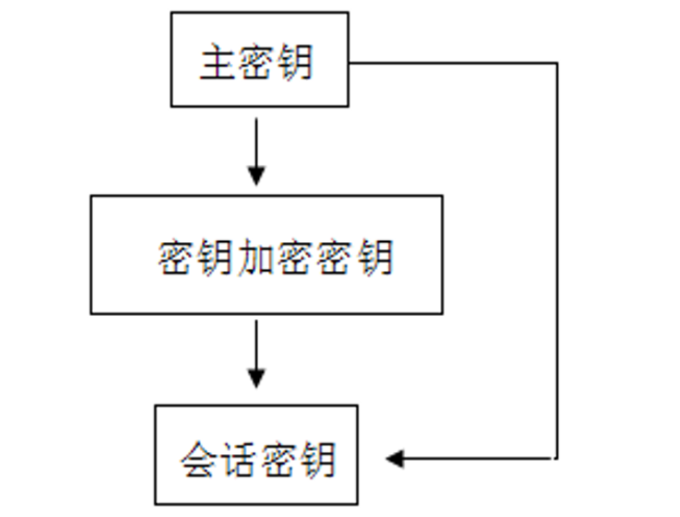 在实际应用中,尤其是在网络环境下,多采用层次化的密钥管理结构。通常下一层的密钥由上一层密钥按照某种密钥算法生成,因此,掌握了主密钥,就有可能找出下层的各个密钥。