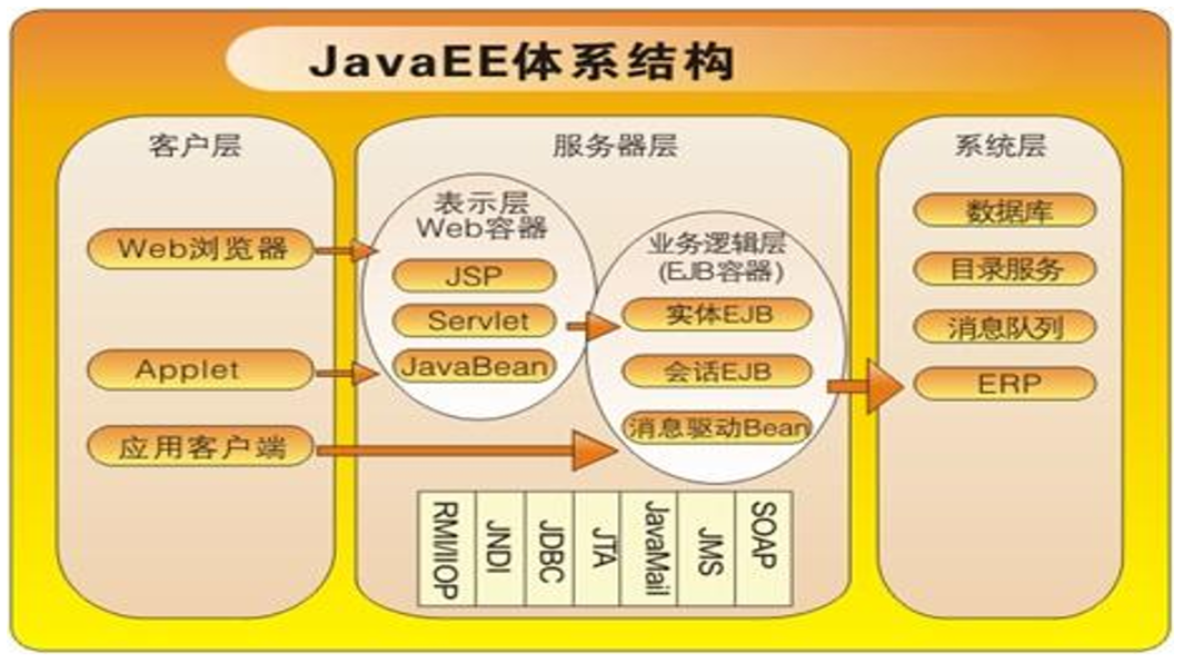 4、企业信息系统层(EIS),是指运行在EIS服务器上的软件系统,存储和管理核心数据。