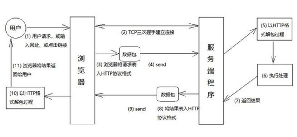 访问过程:通过浏览器,请求IP地址或域名,返回网页(html代码)。